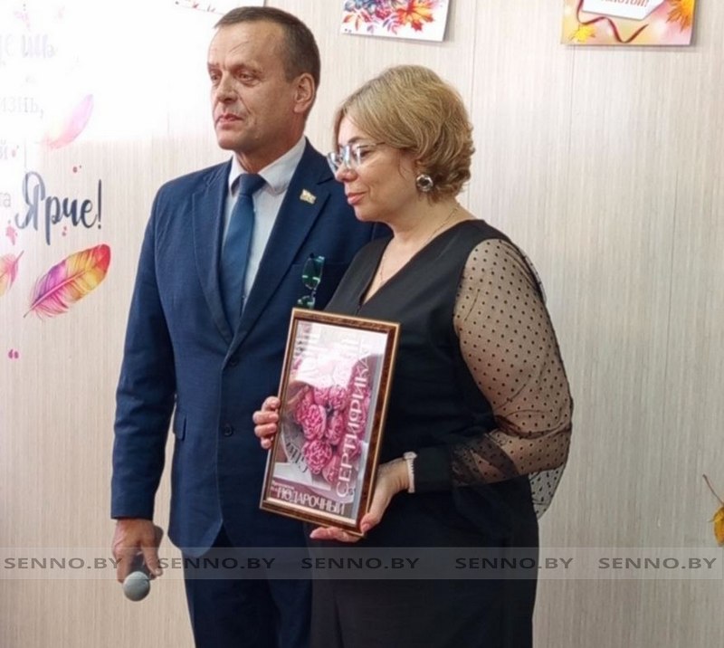 Обращаясь к присутствующим, Олег Анатольевич выразил им свое уважение и признательность за многолетний труд и бесценный вклад в развитие района. В качестве подарка он вручил Татьяне Манкевич, директору ТЦСОН Сенненского района, сертификат от районной организации Белорусского профессионального союза работников государственных и других учреждений на укрепление материально-технической базы отделения.