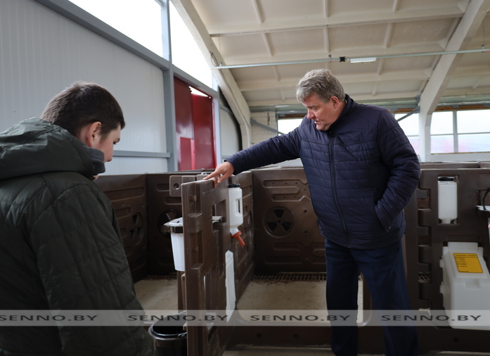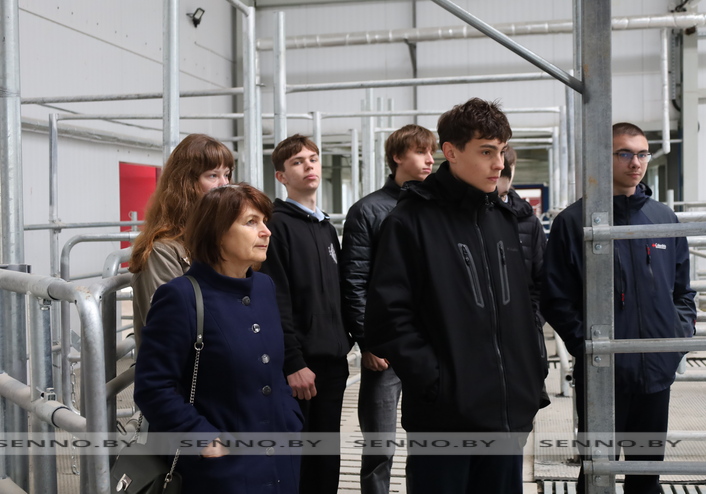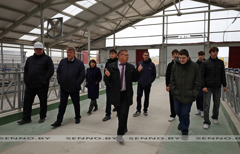 Первый заместитель председателя-начальник управления по сельскому хозяйству и продовольствию райисполкома Андрей Лебедев и заместитель председателя райисполкома Сергей Голубев провели для ребят экскурсию и рассказали, как будет налажена работа в молочно-доильном блоке, родильном отделении, цехе раздоя, здании для молодняка и нетелей, профилактории и др. Особый интерес у мальчишек и девчонок вызвала так называемая «карусель» — автоматизированная конвейерная система для доения коров.