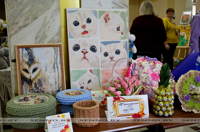 В фойе для гостей праздника была организована осенняя тематическая фотозона, а также выставка рукотворных шедевров, авторами которых и являлись виновники торжества.