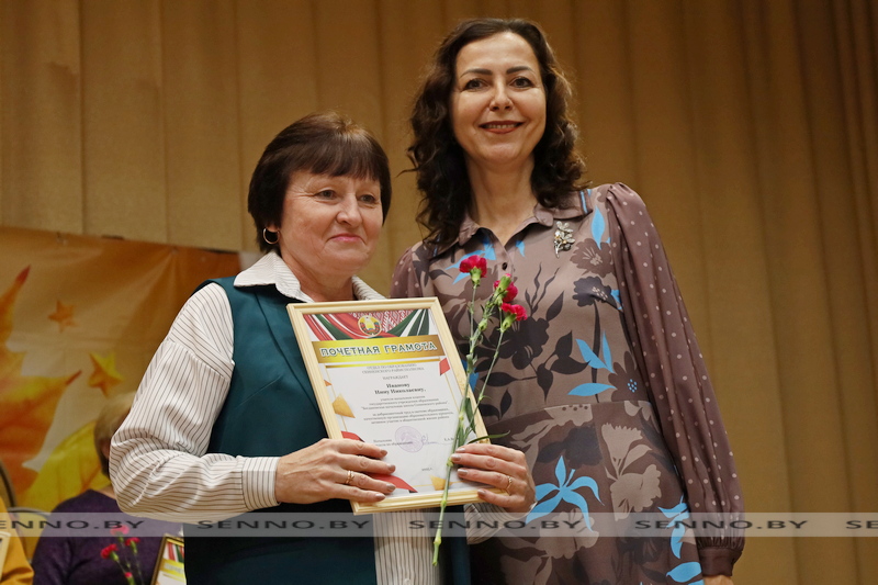 Со словами бесконечной благодарности за труд, терпение, преданность своей профессии выразили Александр Клячин, председатель Сенненского райисполкома, Елена Вилюгина, начальник отдела по образованию райисполкома, Александр Колымаго, председатель районной организации Белорусского профессионального союза работников образования и науки, Снежанна Метелица, председатель районного отделения Витебской области Белорусской партии «Белая Русь».