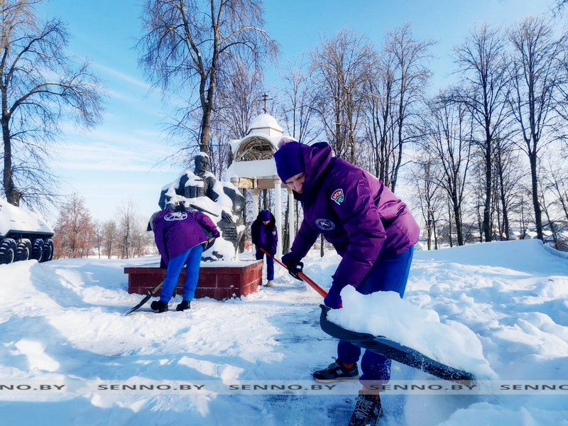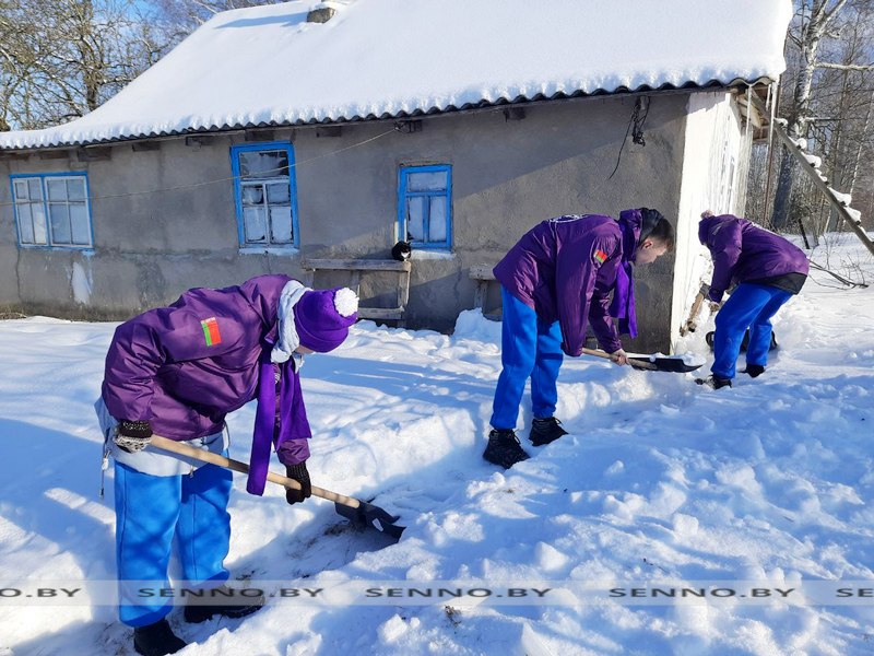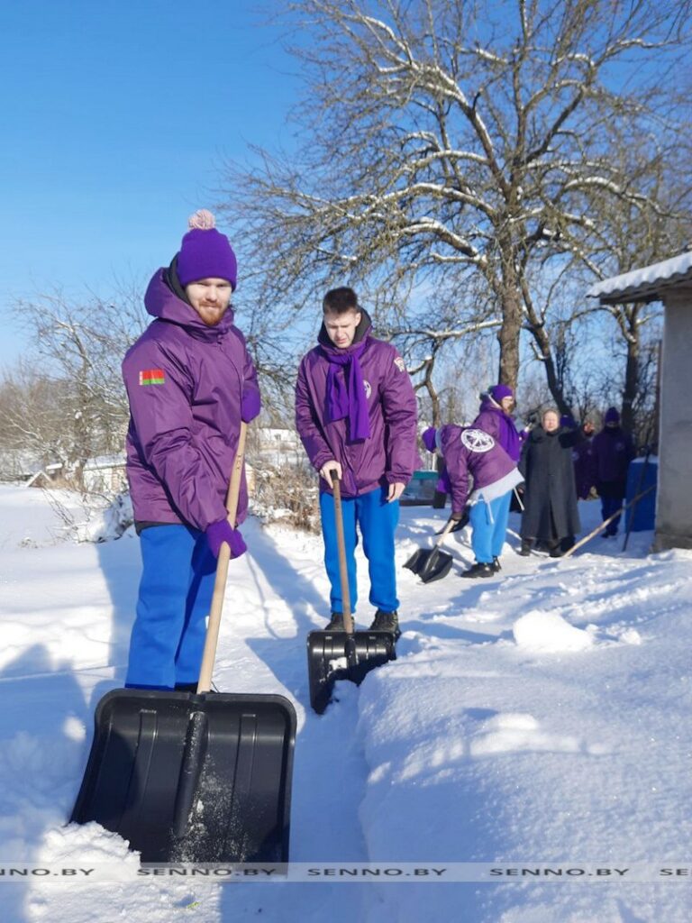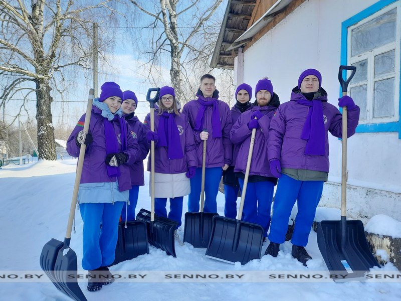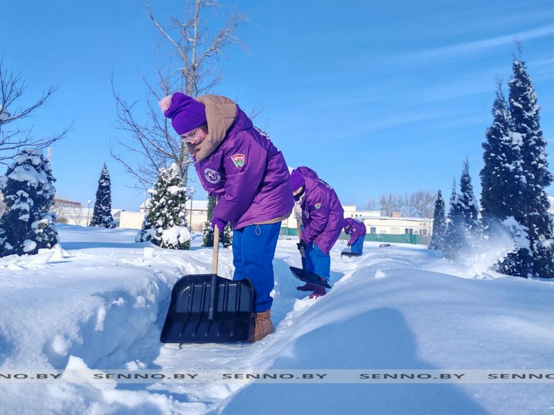 Бойцы студотряда «Время первых» протягивают руку помощи в уборке снега на Сенненщине