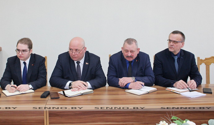 В работе принимает участие председатель райисполкома Александр Клячин. Также присутствуют Михаил Вилюго, председатель районного Совета депутатов, Олег Тетюев, управляющий делами райисполкома, Иван Квашко, председатель Молодёжного совета при Сенненском районном Совете депутатов.