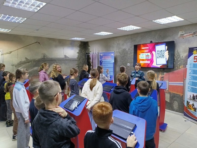 Знакомство с центром началось с проверки знаний по поведению в разных чрезвычайных ситуациях. Ребятам представилась возможность отыскать опасности в квартире с «дополненной реальностью», эвакуироваться из задымлённого помещения.