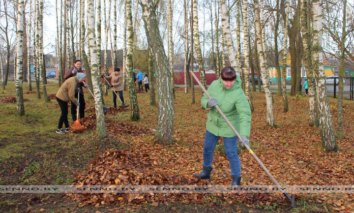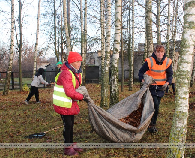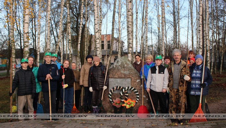 Активисты ОО «БРСМ», ветераны, представители районной организации Коммунистической партии Беларуси, отделения дневного пребывания для граждан пожилого возраста Сенненского ТЦСОН, сотрудники РУП ЖКХ навели порядок в «Роще памяти» в райцентре – убрали территорию от опавшей листвы.