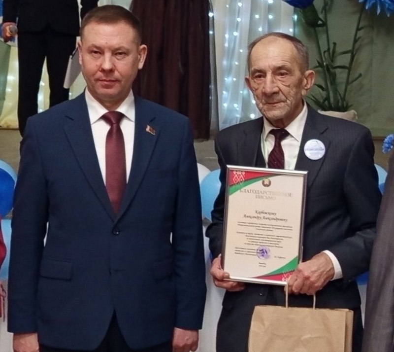 За многолетний труд, милосердие и преданность волонтерскому движению в номинации «Сердце, отданное людям» Александр Карбовский получил благодарственное письмо, которое вручил председатель Комитета по труду, занятости и социальной защиты Витебского облисполкома Борис Ефремов.