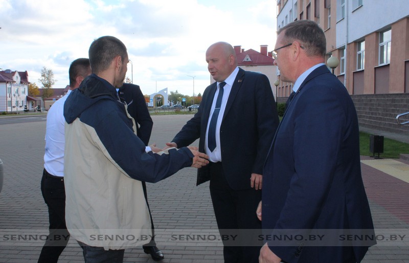 Гостей встретили Александр Клячин, председатель Сенненского райисполкома, и Андрей Лебедев, первый заместитель председателя — начальник управления по сельскому хозяйству и продовольствию райисполкома.