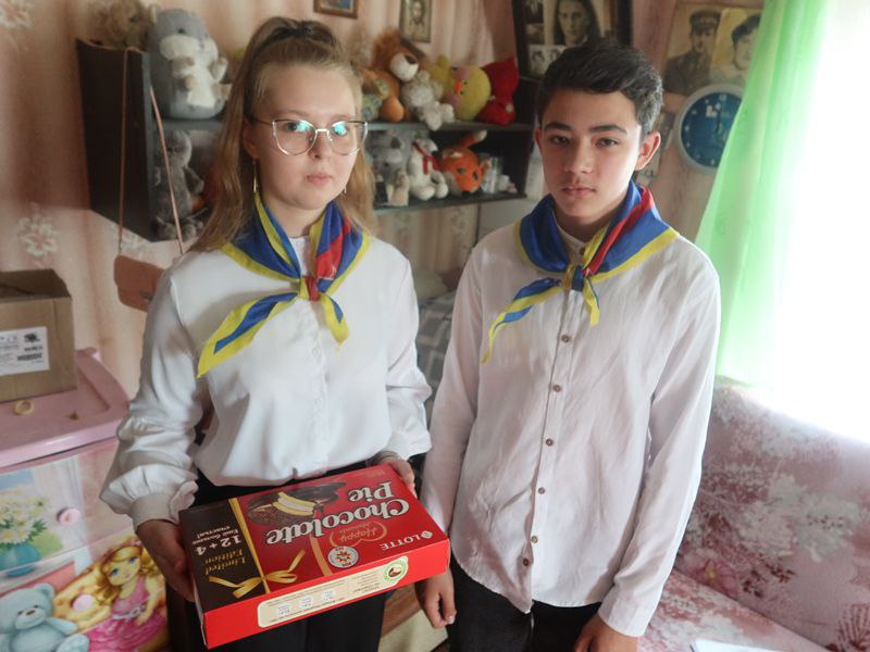 Не обошлось без угощений: ребята передали пожилым людям сладости.