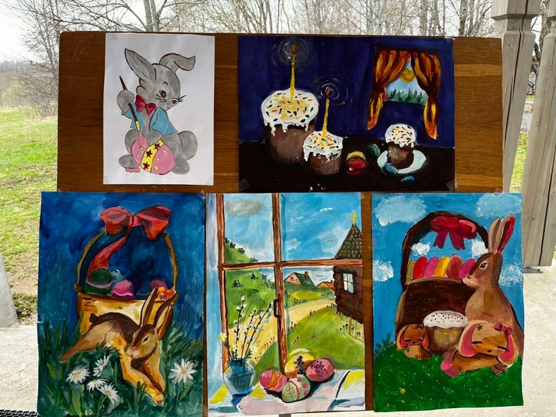На протяжении нескольких дней здесь была организована выставка работ учащихся, которые поддержали тематический конкурс «Рисуем Пасху всей семьей». Инициатором творческого состязания выступила Екатерина Столярова, попечитель Храма Успения Пресвятой Богородицы в д.Оболь, соорганизаторами — Мошканская школа и Турцентр «Сенно».