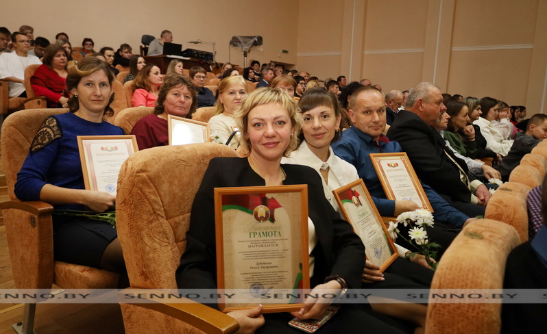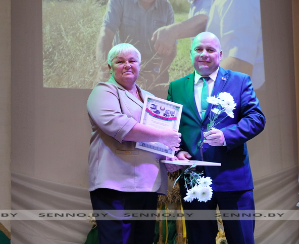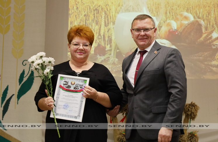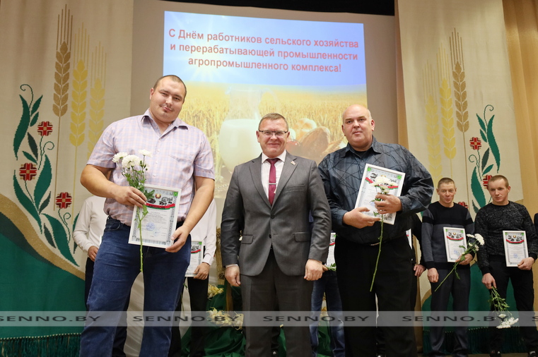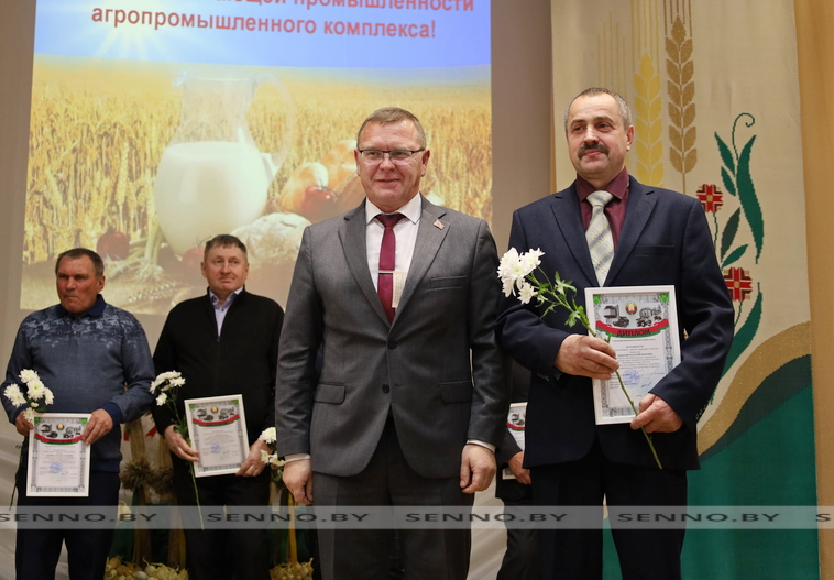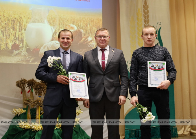 Председатель Сенненского райисполкома Александр Клячин наградил победителей по итогам районного соревнования за достижение лучших показателей в растениеводстве и животноводстве во многих номинациях, руководителей хозяйств.