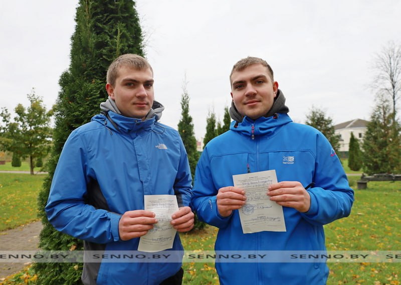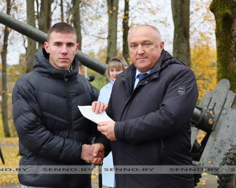 В торжественной обстановке повестки на срочную воинскую службу новобранцам вручили заместитель председателя райисполкома Александр Красаков и военный комиссар Сенненского района подполковник Дмитрий Ермаков.