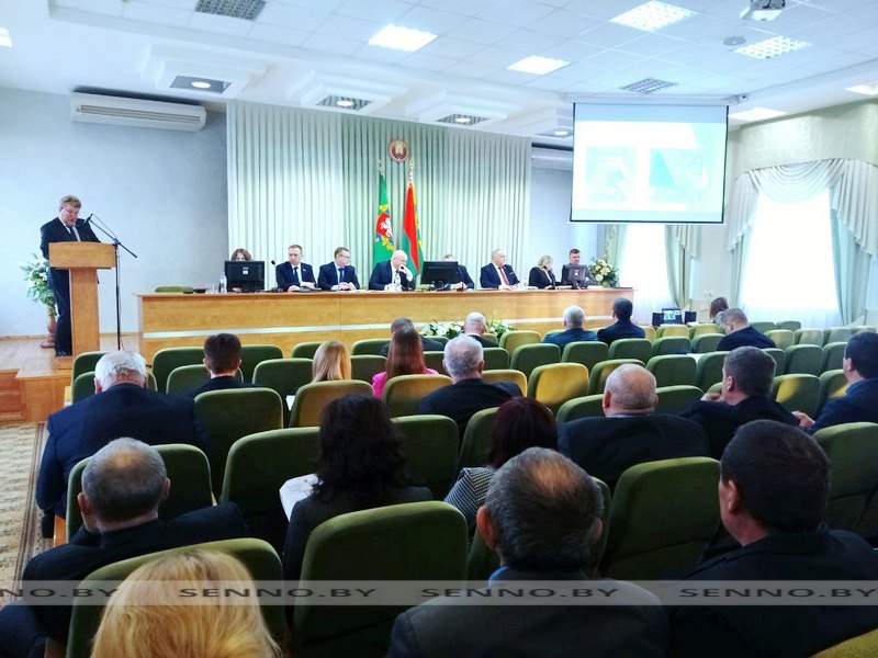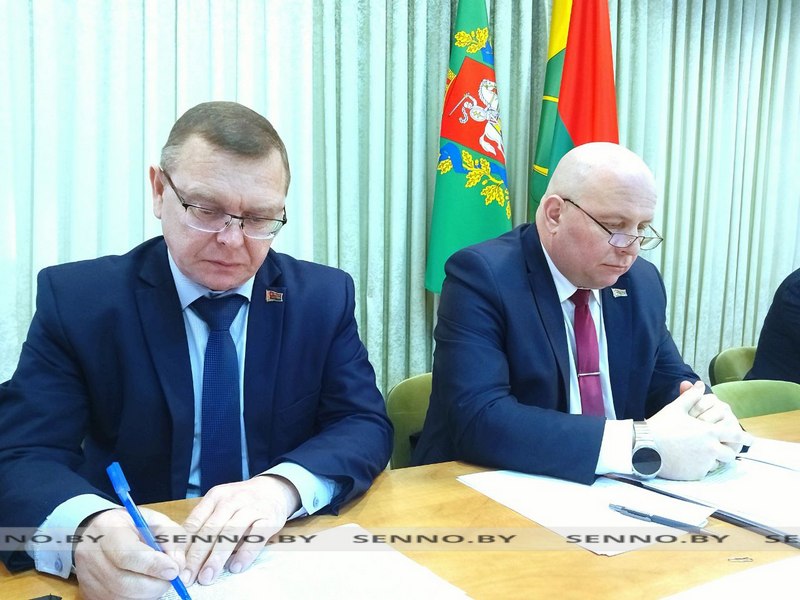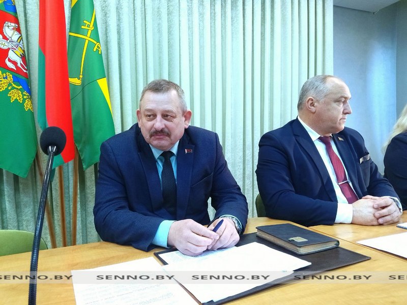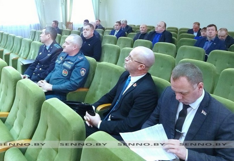 Проходит заседание Сенненского районного исполнительного комитета под руководством председателя райисполкома Александра Клячина. В мероприятии принимают участие председатель районного Совета депутатов Михаил Вилюго, прокурор Сенненского района Олег Антоненко.