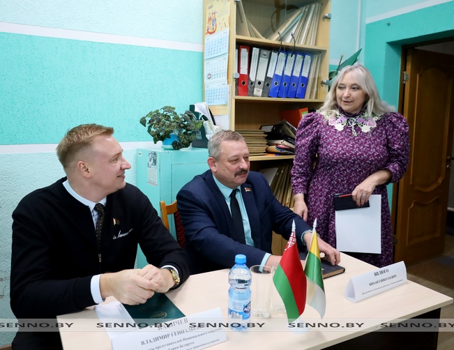 Кроме того, в рамках рабочей поездки в Сенненский район депутат встретился с трудовым коллективом Сенненского РЦГЭ. Он рассказал о деятельности Палаты представителей Национального собрания, остановился на законопроекте «Об изменении Водного кодекса Республики Беларусь». Проинформировал о подготовке ко второму заседанию VII Всебелорусского народного собрания и др.