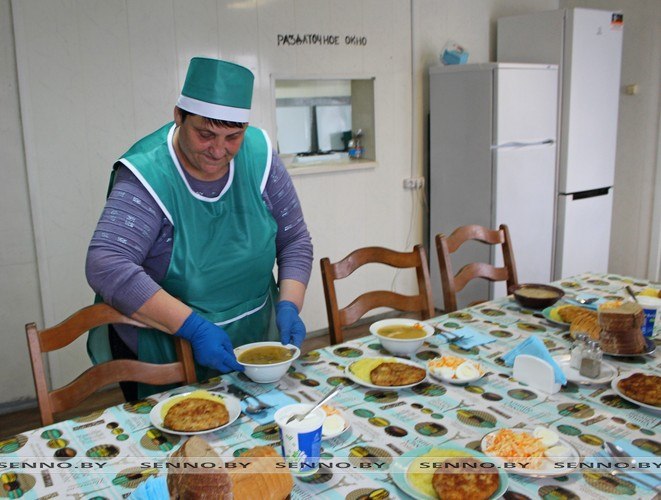 Доставляют еду и в поле. Повар Светлана Луцыкович вместе с помощницей Еленой Барковец ежедневно готовят вкусные высококалорийные обеды. В меню обязательно есть супы, вторые мясные блюда и гарнир, салаты, компот. В каждое блюдо женщины вкладывают частичку заботы и души. Татьяна Диканова отметила, что если бы не добросовестное отношение к делу поваров, то и не было бы тех столько сил и энергии для трудовых побед у хлеборобов УСП «Дружбинец».