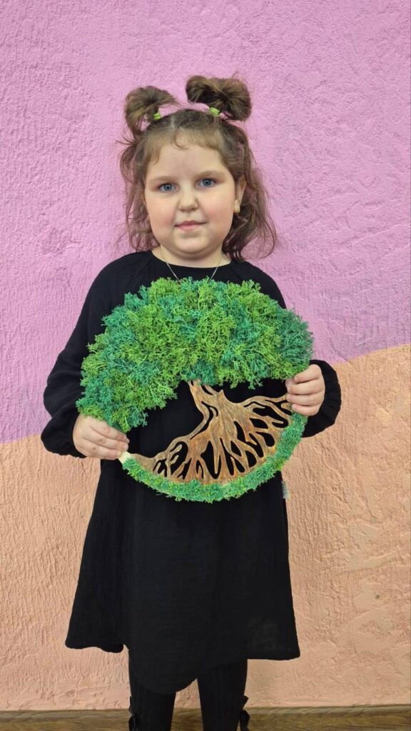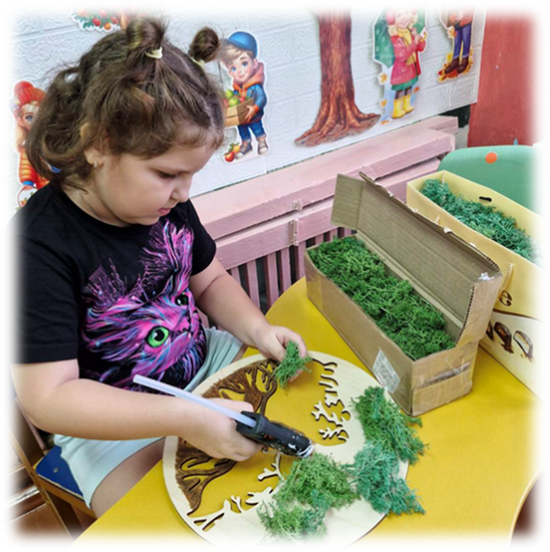 Готовит девочку воспитатель Ирина Стайнова. Именно она и выступила идейным вдохновителем темы, которая взята за основу, — «Вторая жизнь мха». Работа ведется с лета. Очень много сделано в практическом и теоретическом планах: мох собран и очищен, изучен, проведены эксперименты по его рациональному использованию. Более того, выдвинута гипотеза — с помощью раствора воды и глицерина можно сохранить свежесть мха на долгое время. Выдвинутый тезис доказан: проведена стабилизация и окраска вещества. Финальным дополнением стала созданная Ульяной очень красивая рукотворная картина.