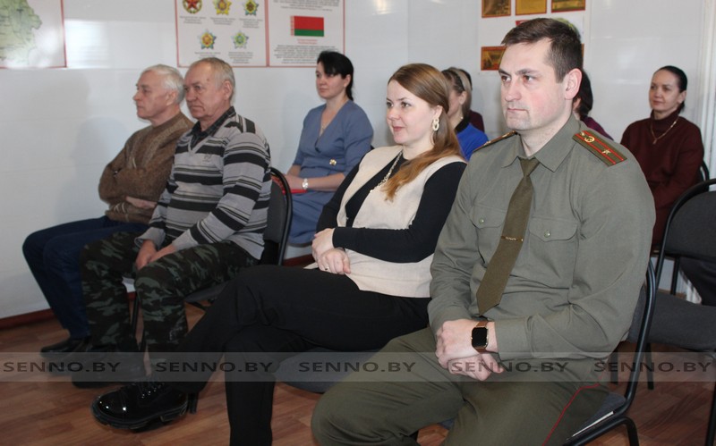 В коллективе Сенненского военкомата побывала информационно-пропагандистская группа в составе Тамары Смирновой, председателя районного совета ветеранов, Илоны Комлёвой, заведующего сектором спорта райисполкома, Олега Галынчика, первого заместителя начальника РОЧС, Татьяны Скопа, управляющего операционной службой Центра банковских услуг №218 ОАО «Сберегательный банк «Беларусбанк», Татьяны Рыжовой, начальника участка Сенно колонны автомобильной ОАО «Витебскоблавтотранс».