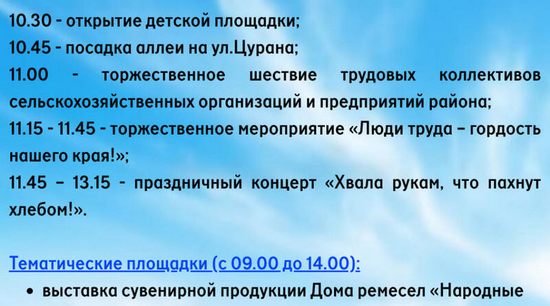 ПРОГРАММА районного фестиваля-ярмарки тружеников села «Дожинки – 2025». Мероприятие пройдет в аг.Мошканы 11 октября.
