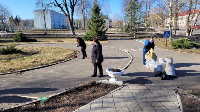 Работа кипит везде: в парках, на улицах райцентра. Люди убирают газоны от прошлогодней листвы, чистят бордюры от песка, готовят клумбы для будущих посадок. Особое внимание уделяется местам воинских захоронений и памятникам.