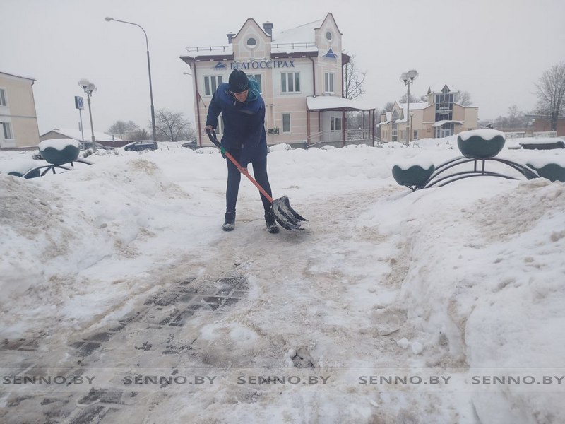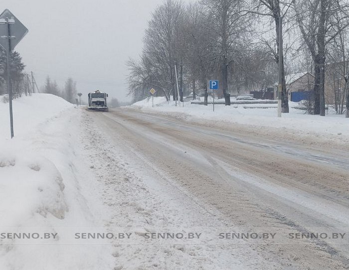Вчера сенненцы наблюдали ледяной дождь. Ветви деревьев, провода покрылись тонким слоем льда. А сегодня с утра засыпало снегом.