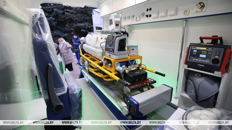 Он также обратил внимание на то, что создатели максимально оснастили автомобиль оборудованием белорусского производства. «Сам автомобиль — белорусский. Приемное устройство, каталка, реанимационный монитор, шприцевые дозаторы — также белорусского производства. Некоторое оборудование — иностранного производства. Данный автомобиль посмотрели детские реаниматологи, и мы получили самые положительные отзывы», — подчеркнул Олег Швед.