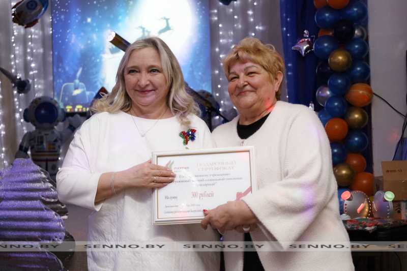 В преддверии новогодних праздников не с пустыми руками приехали председатель районного отделения Витебской области Белорусской партии «Белая Русь» Снежанна Метелица, начальник филиала ОАО «Банк развития Республики Беларусь» Сергей Лапехо, представители кампании автозапчастей «ARMTEK» и другие.