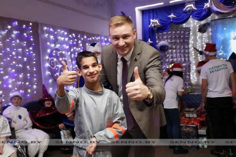 С доброй миссией пожаловали члены Толочинской и Сенненской районных организаций РОО «Патриоты Беларуси» во главе с Владимиром Бабичевым, депутатом Палаты представителей Национального собрания Республики Беларусь, председателем областной организации РОО «Патриоты Беларуси». В рамках акции «Ёлочка желаний» гости постарались воплотить мечту каждого ребенка, подготовив для них долгожданные подарки, – именно те, о которых мальчишки и девчонки писали в своих письмах. Также Владимир Бабичев вручил директору учреждения Елене Лауткиной комплект радиомикрофонов.