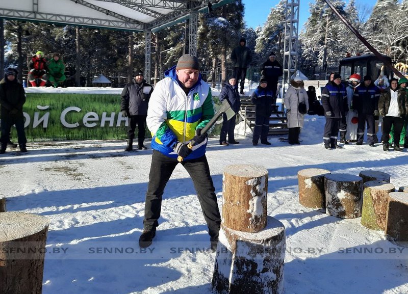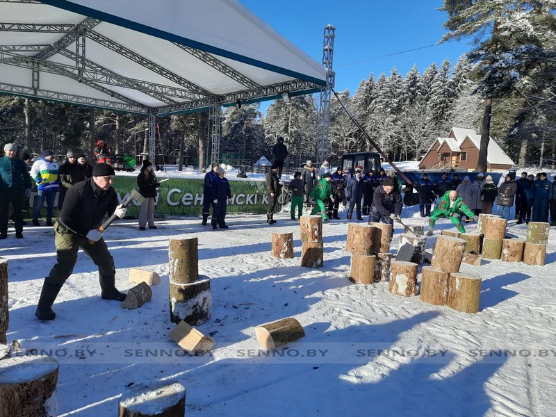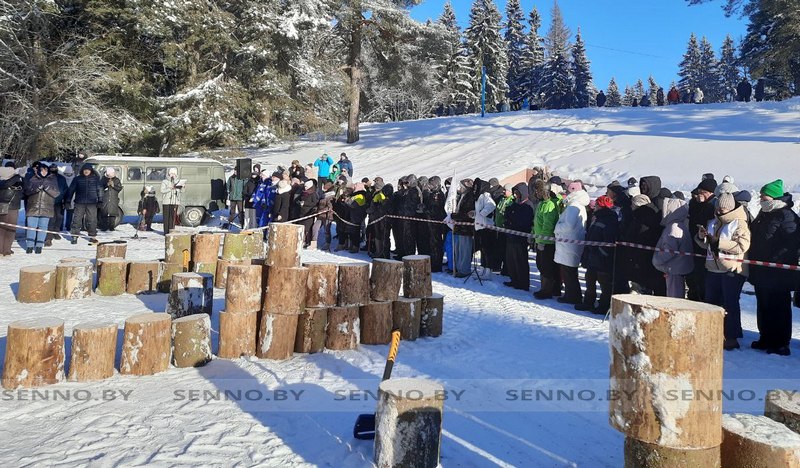 Районные соревнования по колке дров «Сенно РУБИТ» прямо сейчас проходят в парке 40-летия Победы.